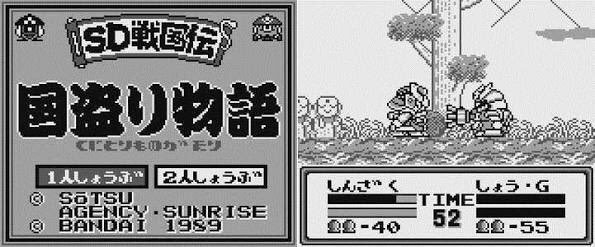 1990年3月24日にバンダイから発売されたゲームボーイ用ソフト「SDガンダム SD戦国伝 国盗り物語」。